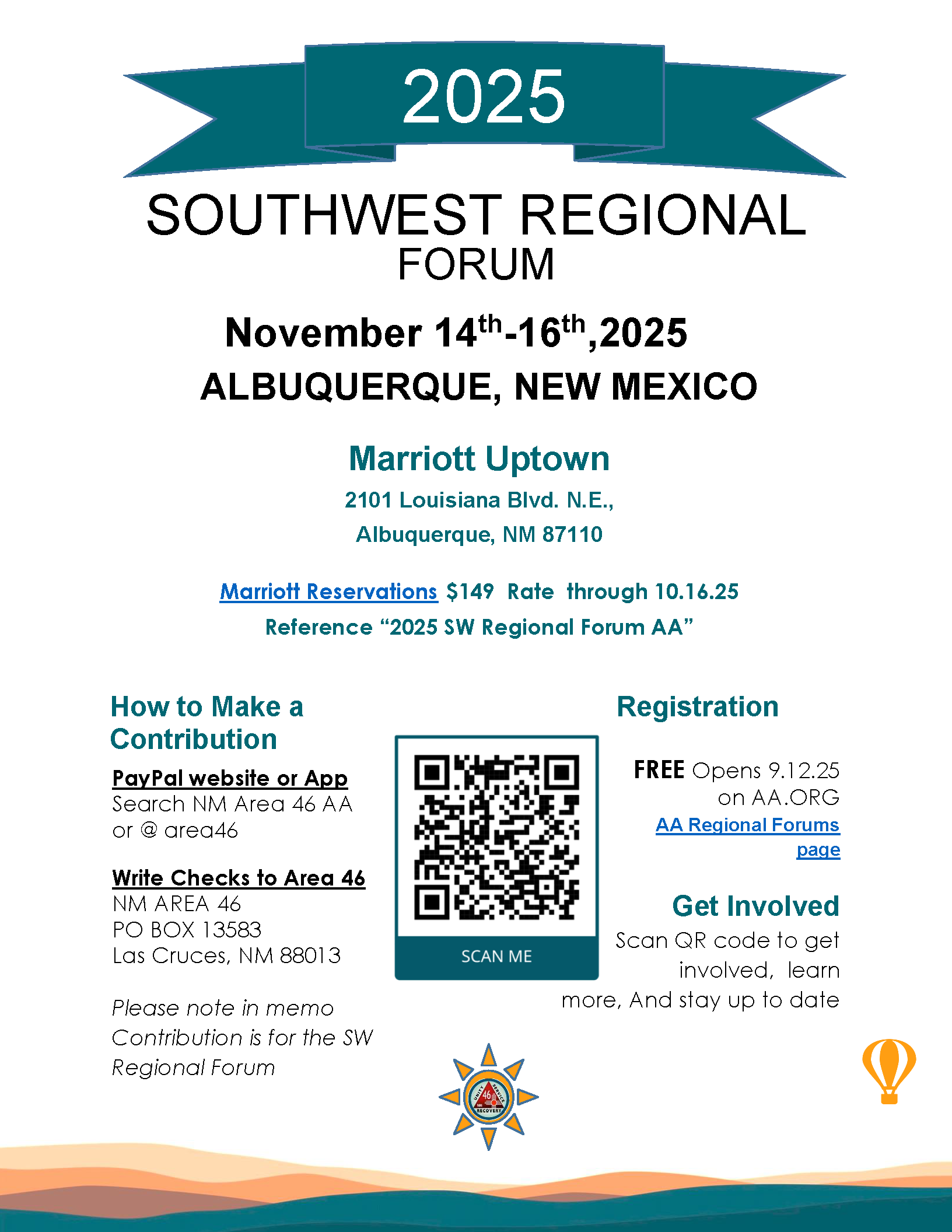 Area Assembly  January 10th and 11th, 2026 Zoom Meeting ID: 931 0896 7121 Passcode: Box459 Link to Area Assembly ZOOM Reserve your room at Holiday Inn Express & Suites-Russellville, 300 East Harrell Drive, Russellville. Call the Hotel at (479) 219-5152 and mention Area 4 Arkansas Assembly to get the discounted rate. Email secretary@arkansasaa.org to ensure